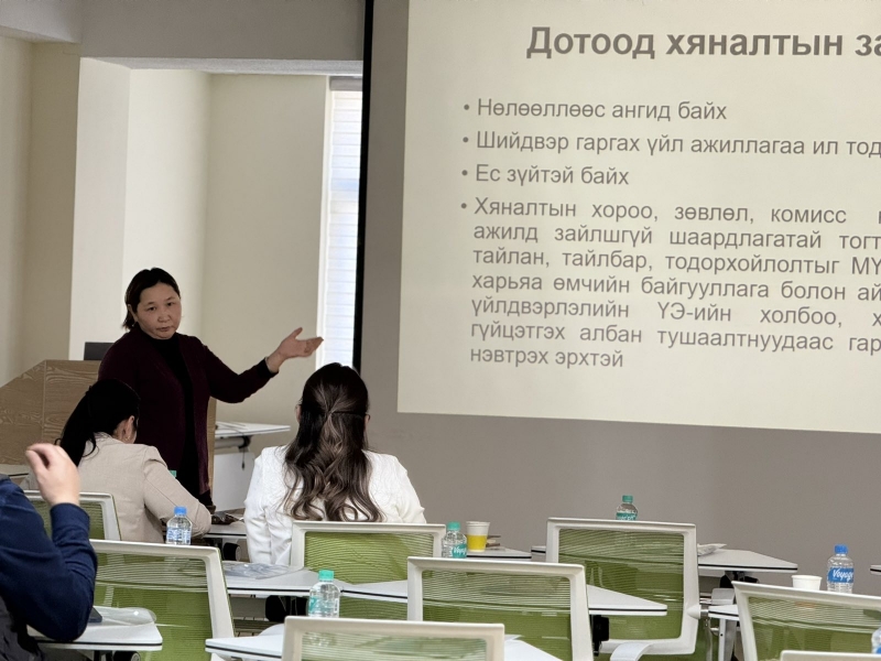 Сургалтыг МЭХГУУ-н ҮЭ-ийн холбооны даргын үүргийг түр орлон гүйцэтгэгч, ерөнхий нарийн бичгийн дарга А.Дагвадорж нээж, МҮЭ-ийн холбооны Хяналтын хорооны дарга С.Дэлгэрмаа “МҮЭ-ийн холбооны дотоод хяналтын дүрэм ба түүний хэрэгжилт”, МЭХГУУ-н ҮЭ-ийн холбооны Хяналтын зөвлөлийн дарга Э.Наранчимэг “МЭХГУУ-н ҮЭ-ийн холбооны Хяналтын зөвлөлийн хийж хэрэгжүүлж байгаа ажил, цаашдын зорилт”, “Хяналт шалгалт хийхэд анхаарах асуудал, эргэх холбоо”, МҮЭ-ийн холбооны нягтлан бодогч О.Оюунсайхан “ҮЭ-ийн байгууллагын санхүүгийн ил тод байдал ба хариуцлага” сэдвээр тус тус илтгэл мэдээлэл өгч, хэлэлцүүлэг өрнүүллээ.