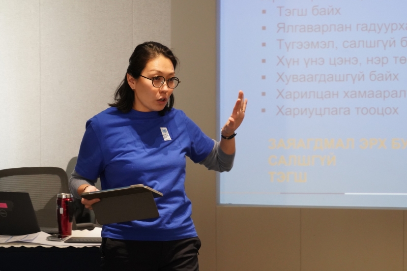 “Бизнес ба хүний эрх”, “НҮБ-ын Бизнес ба Хүний эрхийн удирдах зарчмууд”-ын тухай ойлголт өгөх, “Хүний эрхийн магадлан шинжилгээ”-г геологи, эрдэс баялаг, эрчим хүчний салбарт үйл ажиллагаа эрхэлдэг байгууллагад хэрхэн хийж гүйцэтгэх талаар мэдлэг олгох зорилго бүхий энэхүү сургалтад МЭХГУУ-н ҮЭ-ийн холбооны гишүүн байгууллагуудын ҮЭ-ийн сонгуульт 30 гаруй залуус хамрагдлаа.