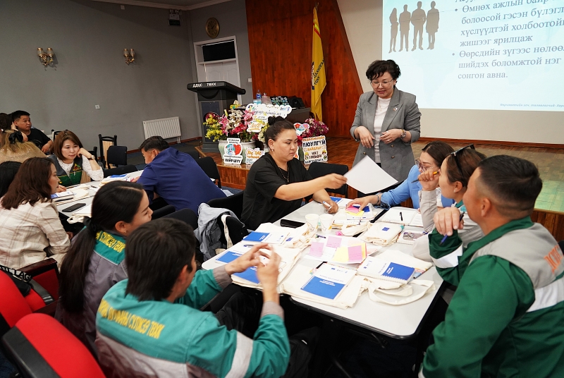Хамтарсан багийн гишүүд хүнд ээлтэй хөдөлмөрийн харилцааг бий болгоход хувь нэмэр оруулах зорилгын хүрээнд Дарханы дулааны цахилгаан станц ТӨХК, Дарханы дулааны сүлжээ ТӨХК, Дархан Сэлэнгийн цахилгаан түгээх сүлжээ ХК-ийн захиргаа болон ҮЭ-ийн хороодтой хамтран, тус гурван компанийн нийт 50 гаруй ажилтанд үүрэг хариуцлага, харилцаа, хандлагаа урлахад чиглэсэн “Бидэнд тулгарч буй асуудал, би, бид юуг хийх хэрэгтэй вэ, хэрхэн хариуцлагатайгаар манлайлах вэ?” сургалт, багийн ажил, хэлэлцүүлэг өрнүүлж, хүний эрхийн түргэвчилсэн магадлан шинжилгээг хийж, баримт бичгүүдтай танилцаж, боломжит хэлбэрээр бүлгийн болон ганцаарчилсан ярилцлагаар мэдээлэл цуглуулж ажилласан юм.